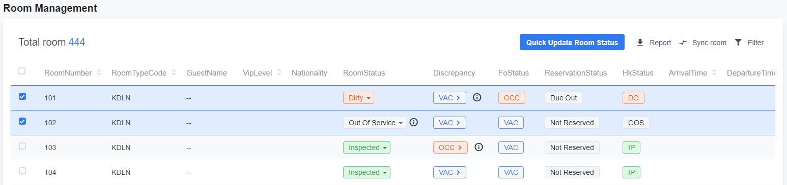 [Quick Update Room Status] - อัปเดตสถานะห้อง