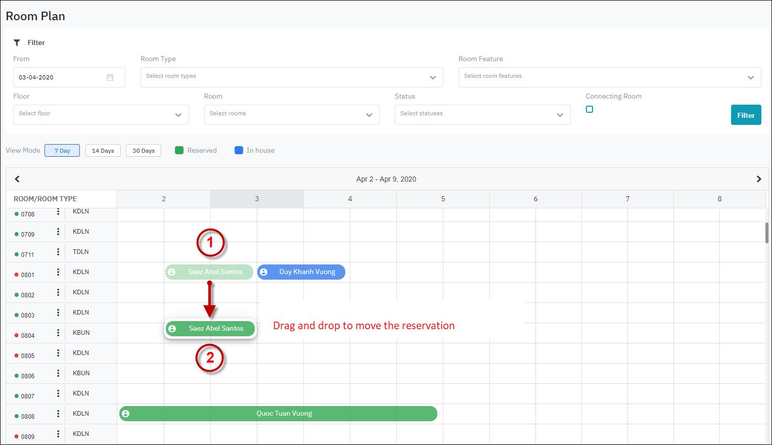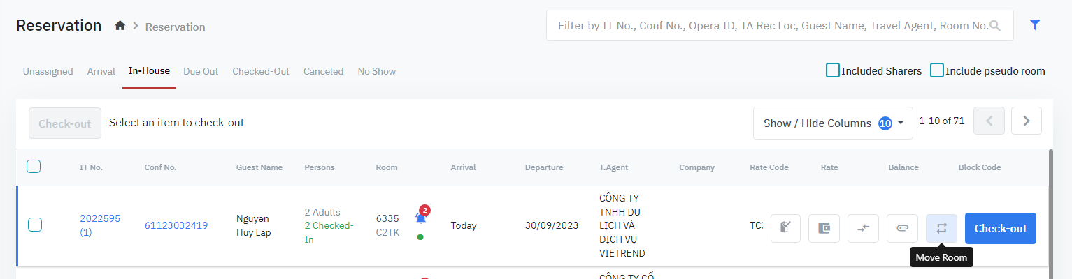 Log in – Front Office – Reservation – Tab In-house – เลือกรายการจองห้อง – กด “Move Room”![]() |