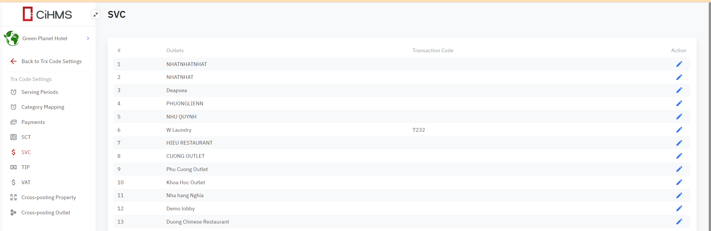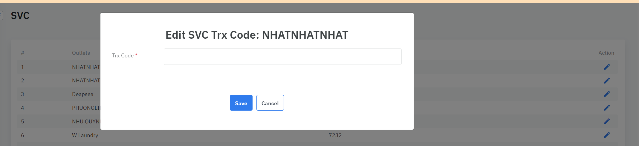SVC - ข้อมูลรหัสธุรกรรมค่าบริการ |
