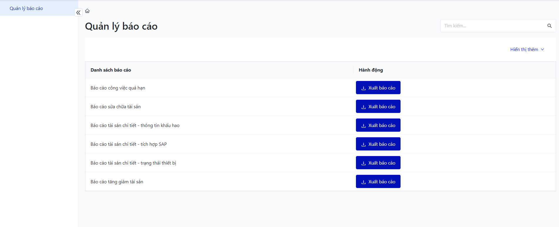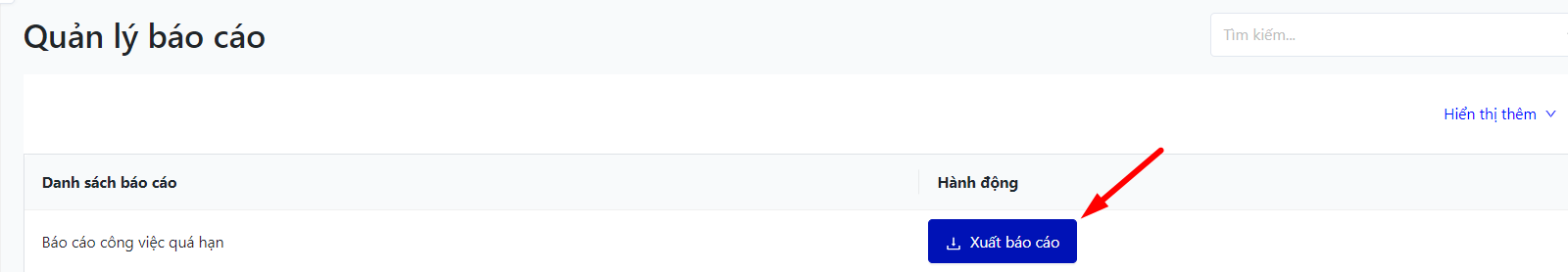Đăng nhập – Quản lý báo cáo – Báo cáo công việc quá hạn |
