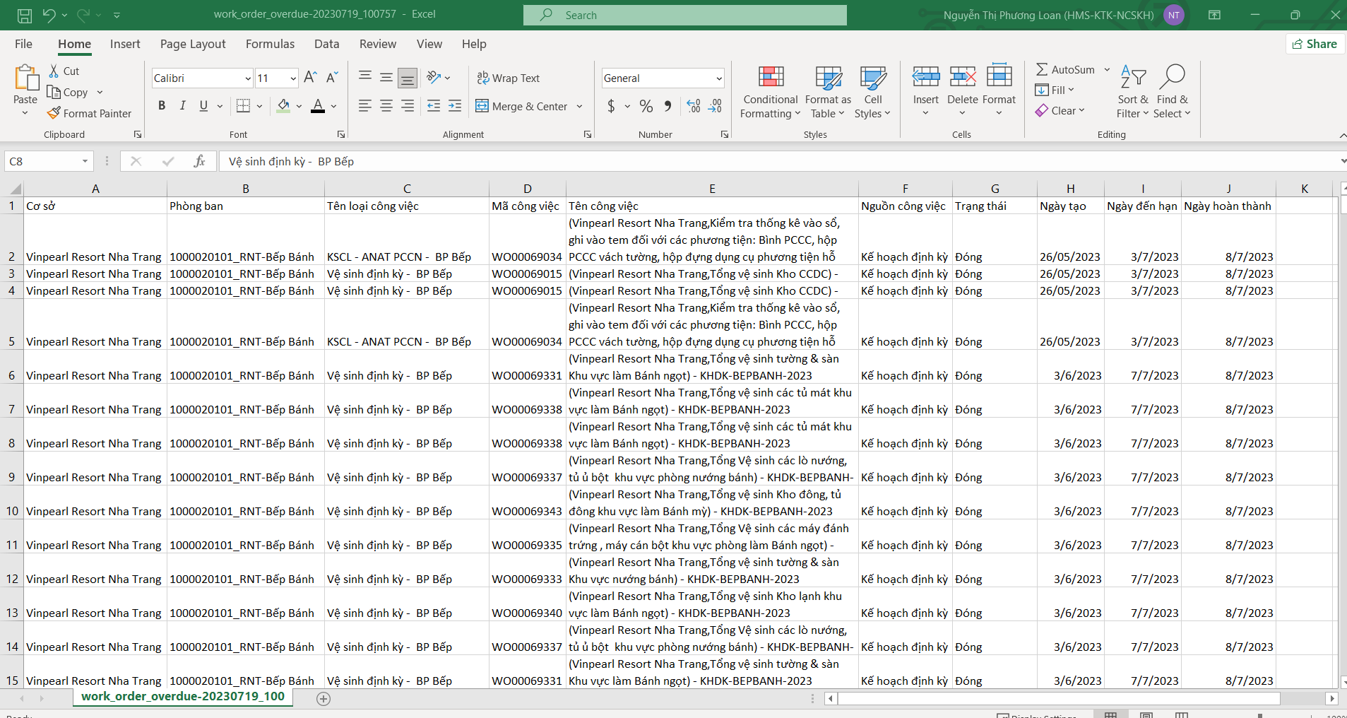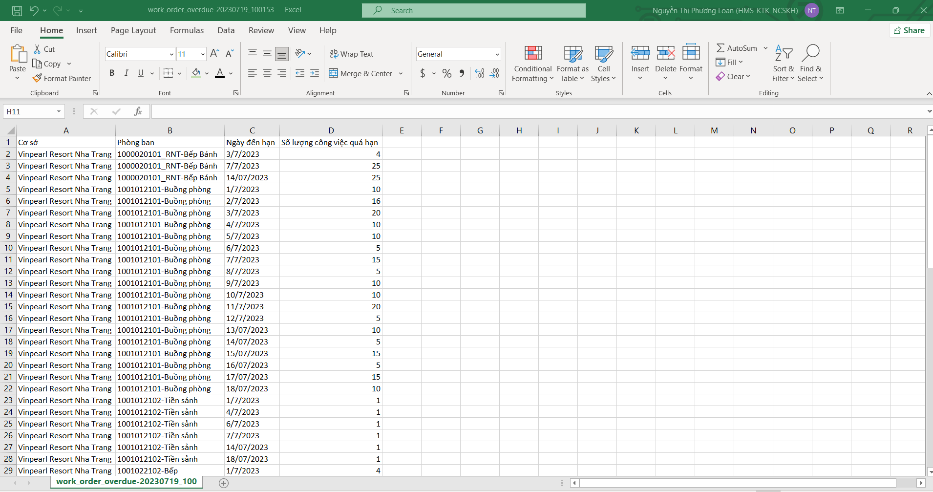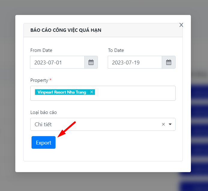 III. Báo cáo chi tiết công việc quá hạnSau khi nhập đầy đủ các thông tin ở phần bộ lọc, người dùng chọn “Export” để thực hiện xuất file báo cáo theo định dạng Excel ![]() ![]()
