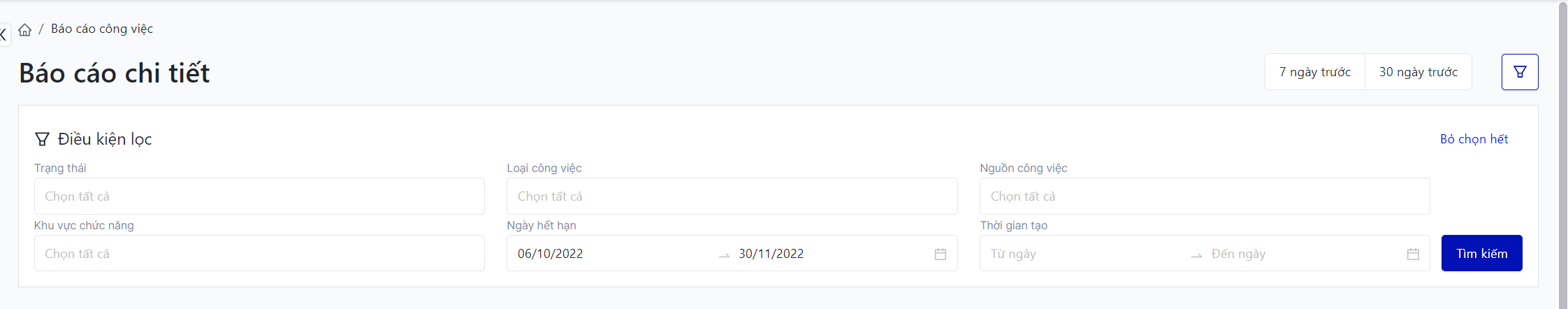 I. Các điều kiện lọc và tìm kiếm![]()