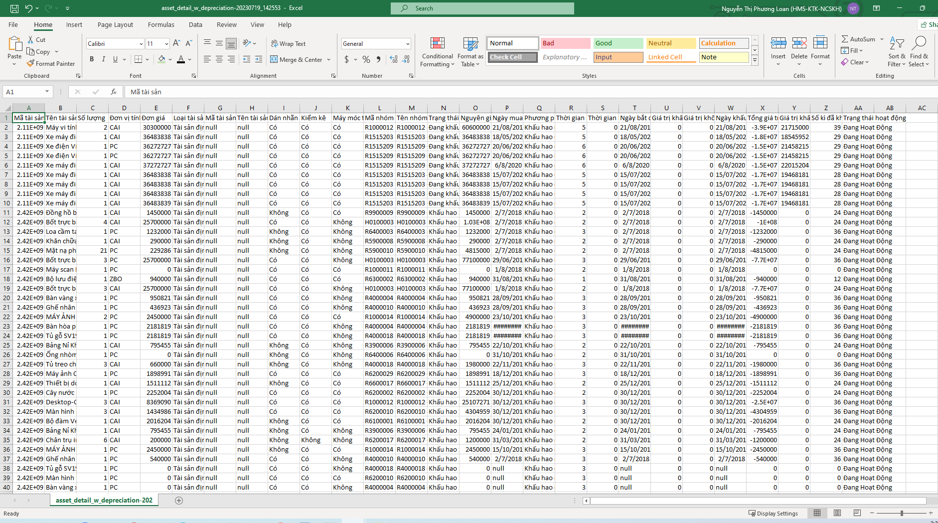 Báo cáo tài sản chi tiết - thông tin khấu hao