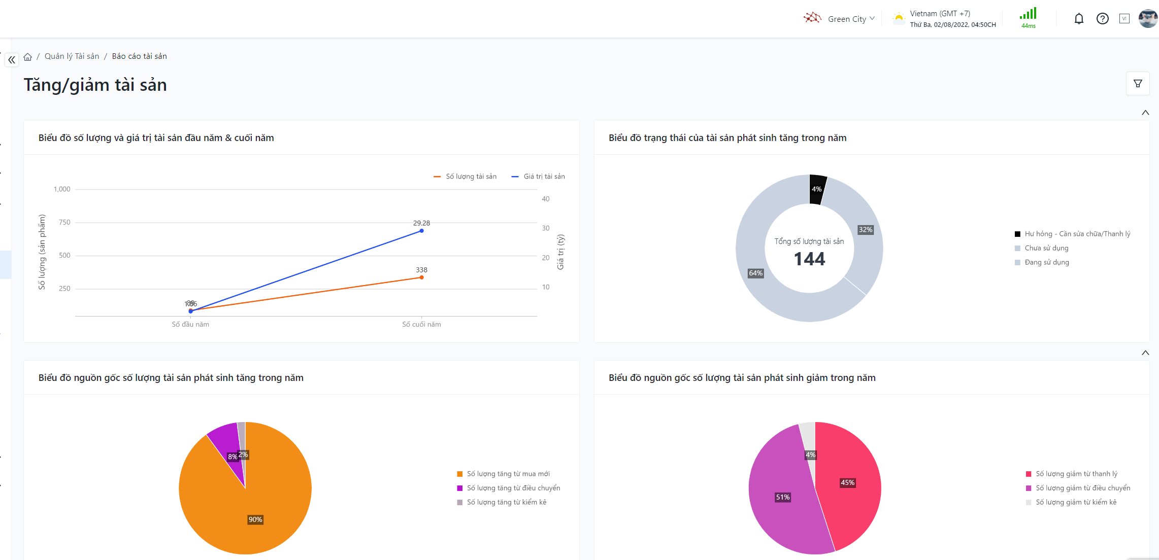 Đăng nhập – Tài sản doanh nghiệp – Báo cáo tài sản – Tăng/ giảm tài sản |