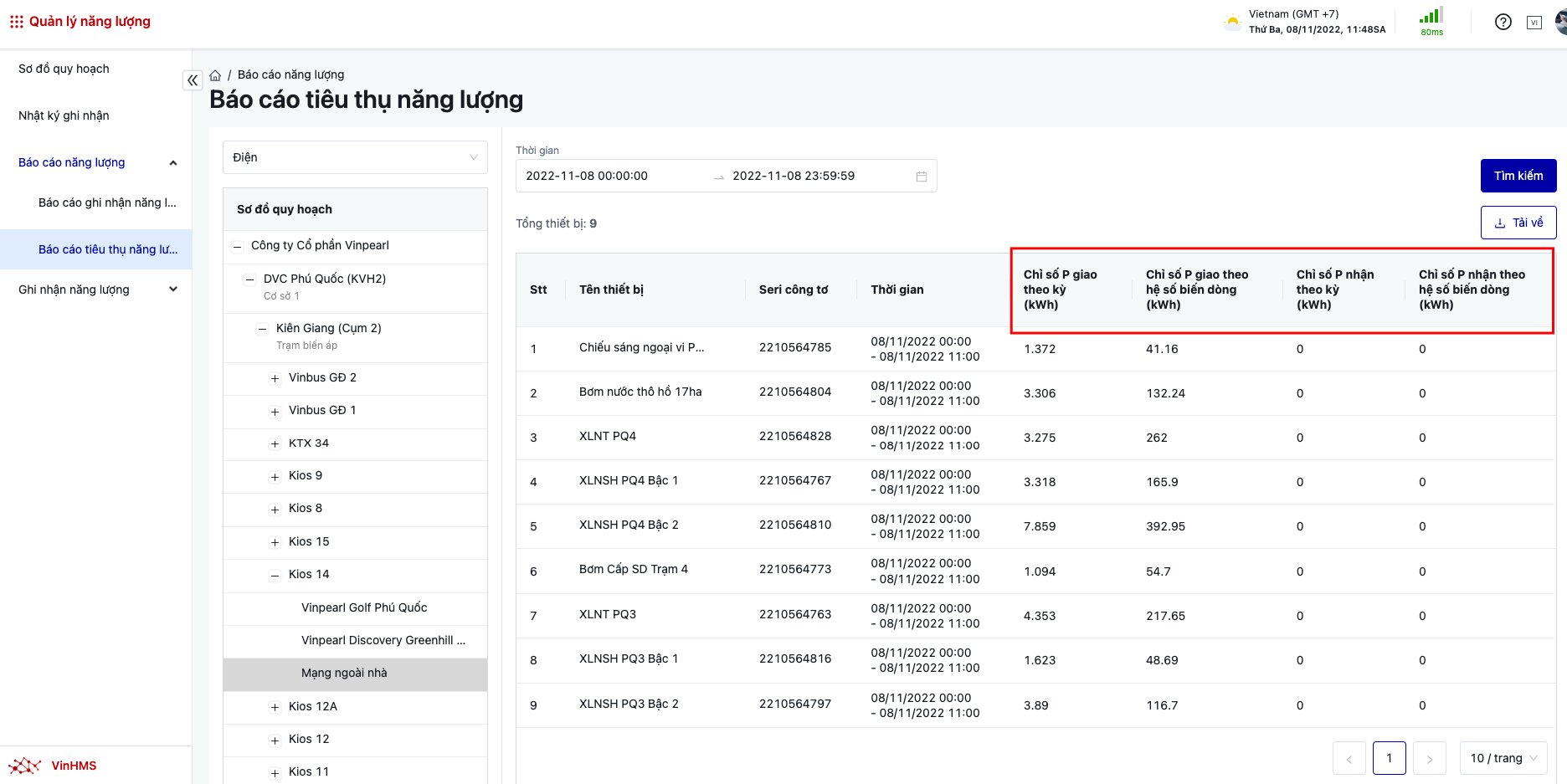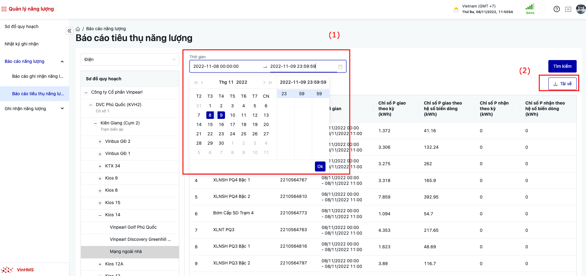 Đăng nhập → Quản lý năng lượng →Báo cáo năng lượng |