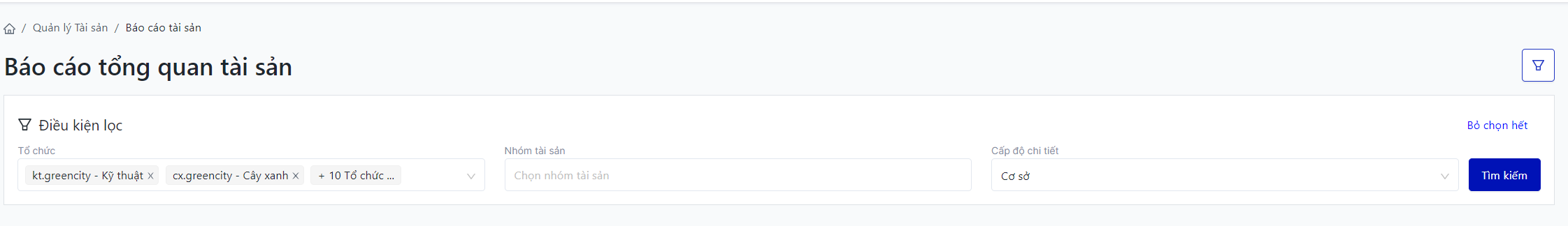 I. Các điều kiện lọc và tìm kiếm báo cáo tổng quan tài sản![]()
