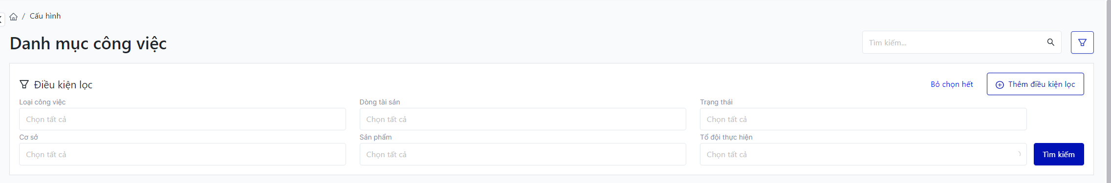 I. Các điều kiện lọc và tìm kiếm danh mục công việc![]()