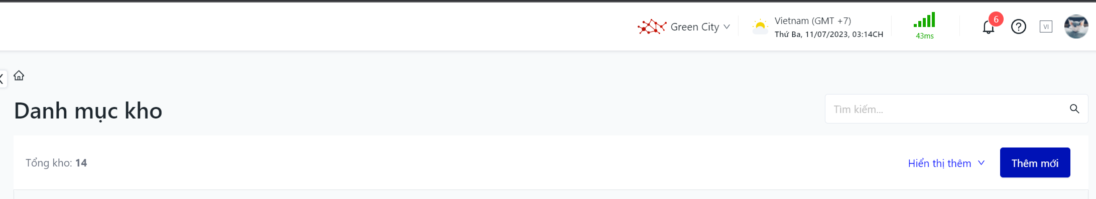 I. Các điều kiện lọc và tìm kiếm danh mục kho
