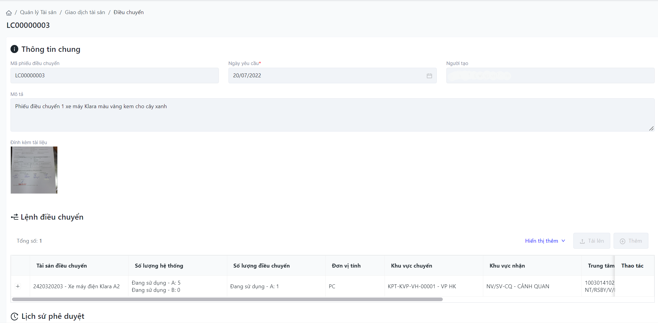 Điều chuyển tài sản (Asset Transfer) |