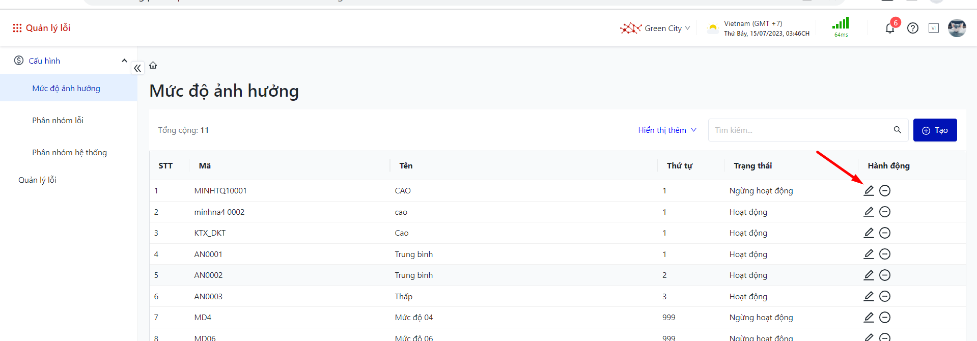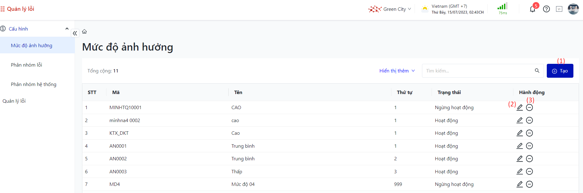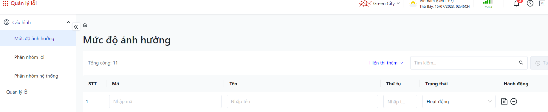 Đăng nhập – Quản lý lỗi – Cấu hình – Mức độ ảnh hưởng |