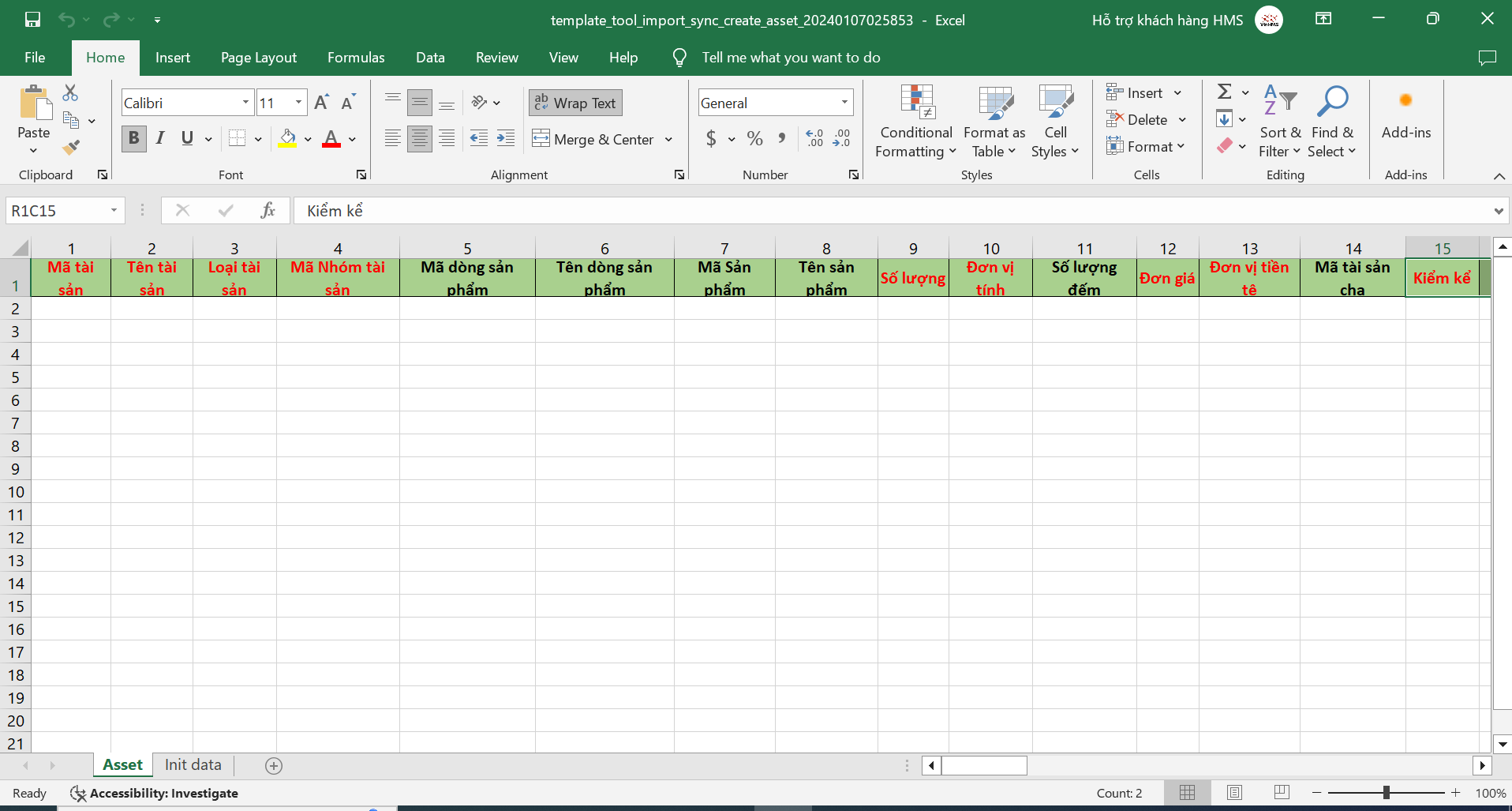 Màn hình hiển thị các template để tạo mới, cập nhập thông tin cho các tài sản đồng bộ SAP của cơ sở |