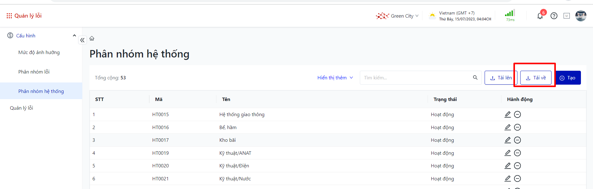 Đăng nhập – Quản lý lỗi – Cấu hình – Phân nhóm hệ thống |