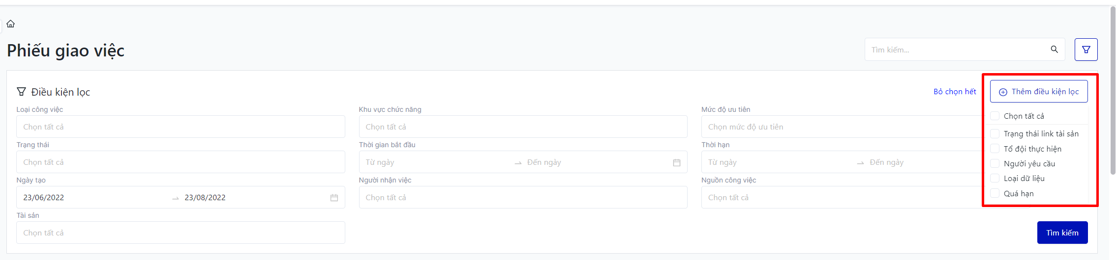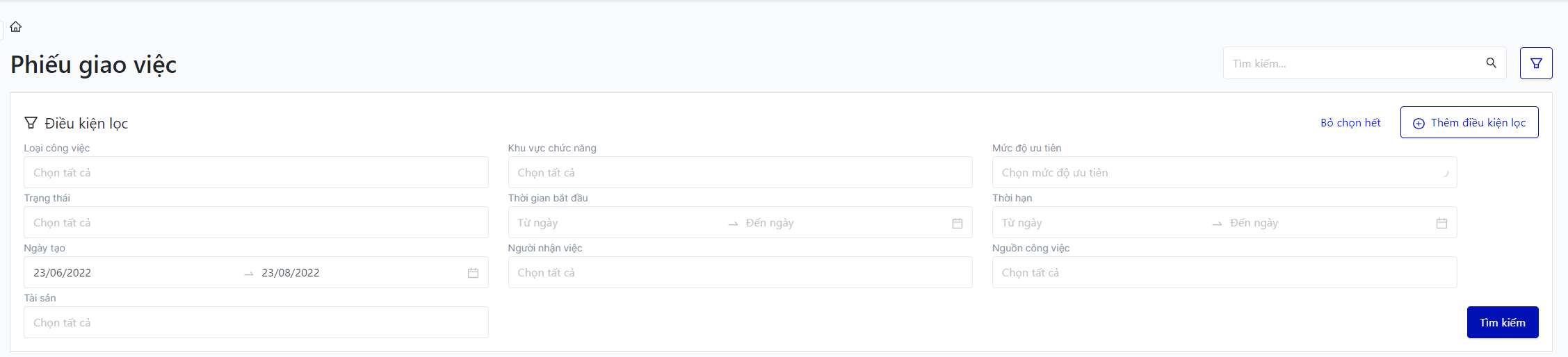 I. Các điều kiện lọc và tìm kiếm phiếu giao việc![]()