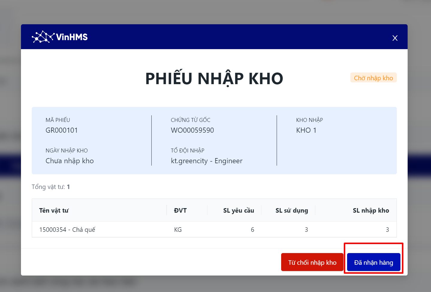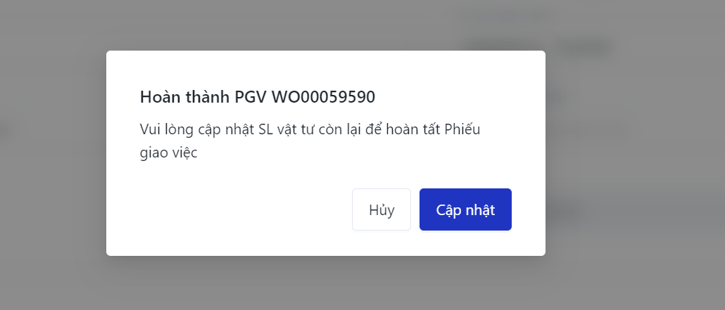 ![]() Người nhận việc vào chọn mục “Tạo bàn giao” để tạo yêu cầu sau đó chọn người nhận việc mới và Tổ trưởng. Lúc này phiếu giao việc sẽ ở tình trạng “Đang bàn giao” ![]() ![]() Người nhận việc mới vào xác nhận hoặc từ chối. Sau khi xác nhận thì phiếu giao việc sẽ được chuyển sang “Người nhận việc” là người mới, nếu “Từ chối” thì phiếu giao việc sẽ được chuyển sang cho “Tổ trưởng” để tạo yêu cầu bàn giao cho người khác. ![]() ![]()