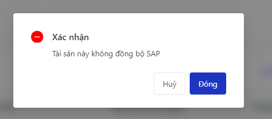 Hủy đồng bộ: Người dùng sử dụng tính năng này để hủy đồng bộ tài sản SAP, chọn nút “Đóng” tài sản sẽ không đồng bộ với SAP nữa