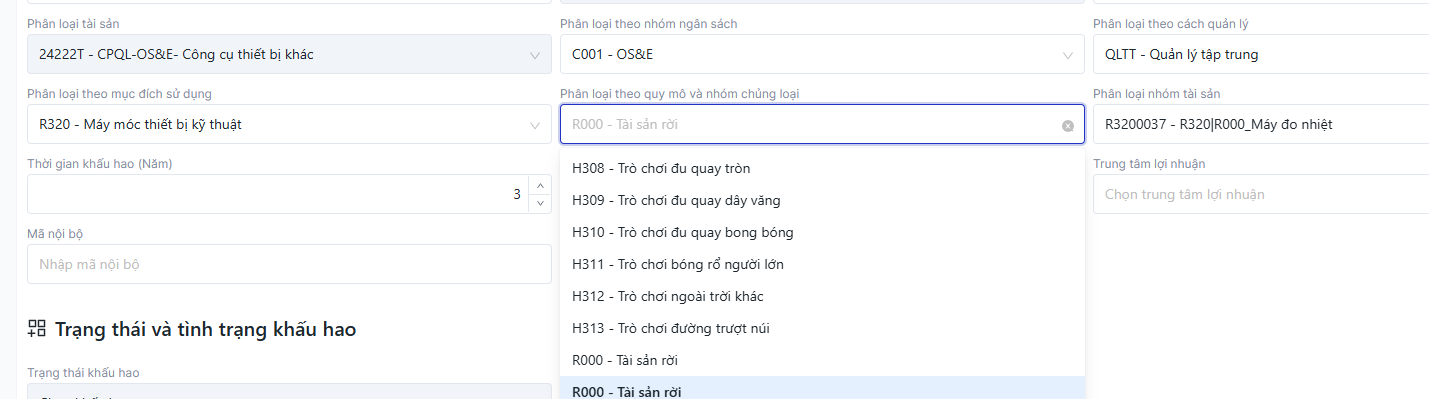 Mã phân loại tài sản: điền mã phân loại tài sản