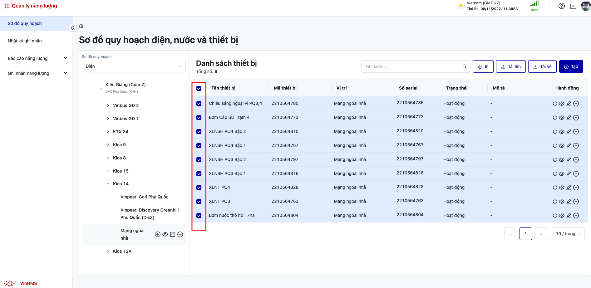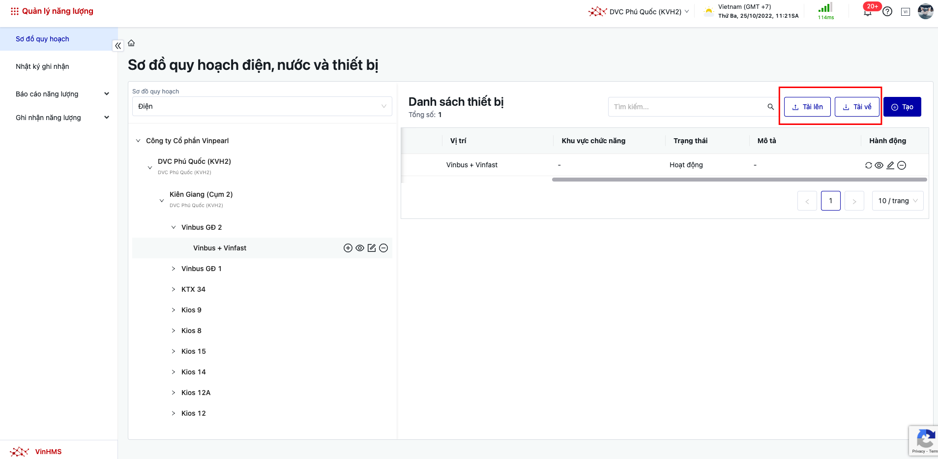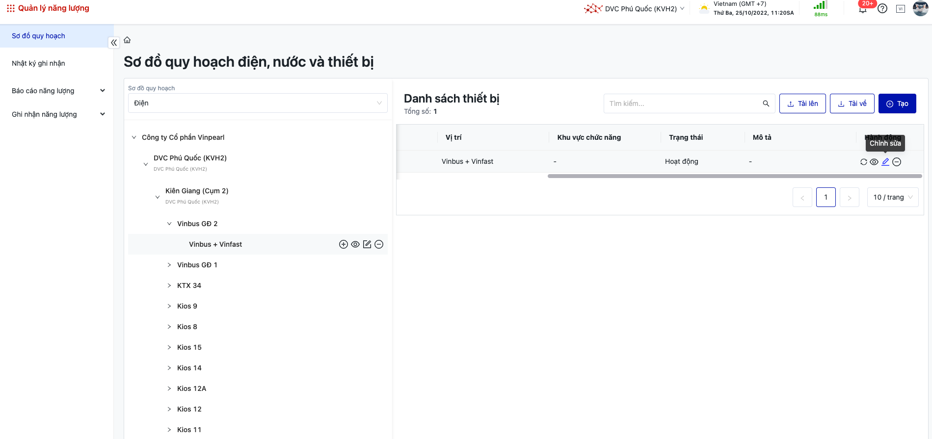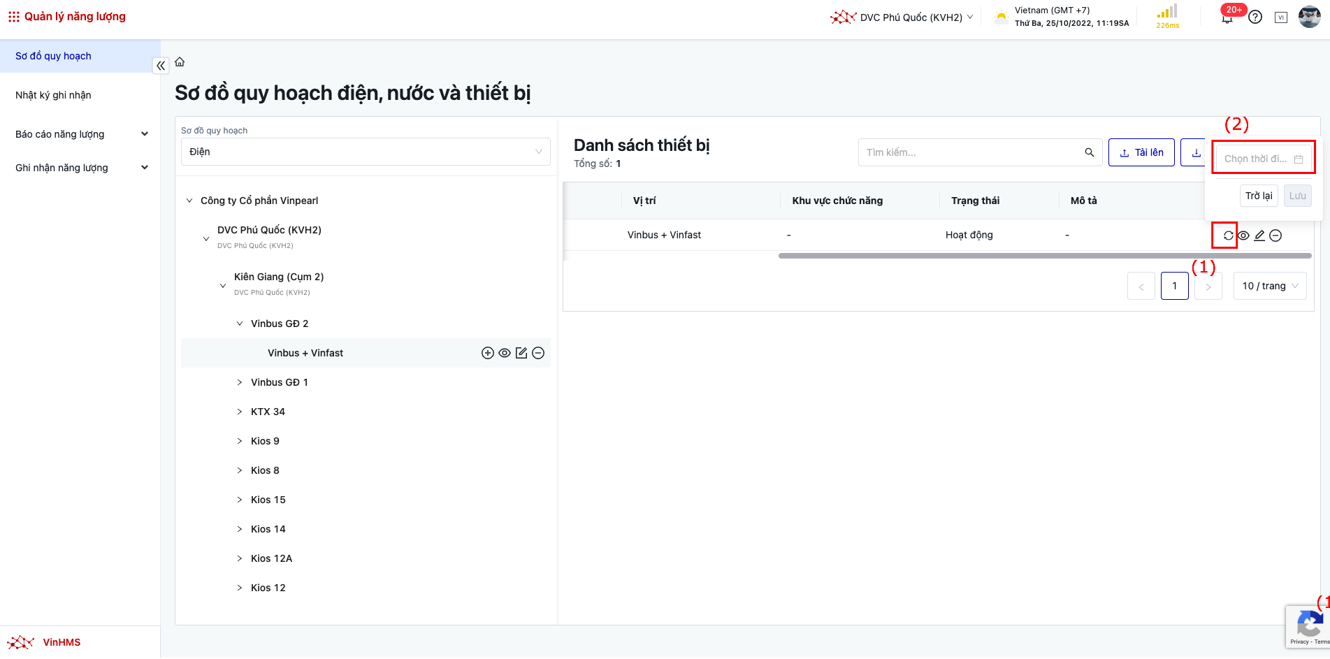 Đăng nhập → Quản lý năng lượng → Sơ đồ quy hoạch |
