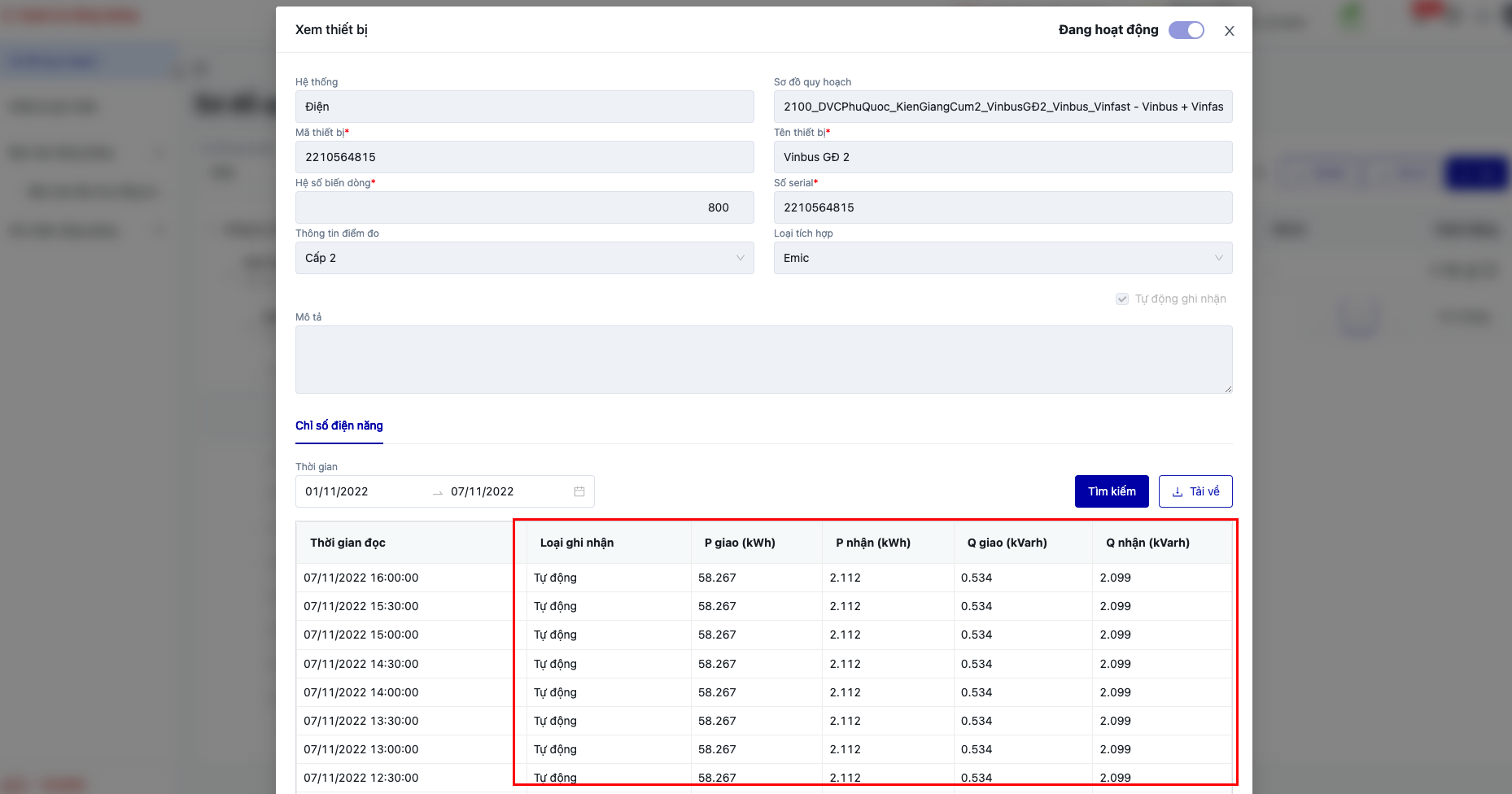 2.1. Xem thông tin ghi nhận tự động trả về từ Emic ( đang chỉ áp dụng cho hệ thống điện) :