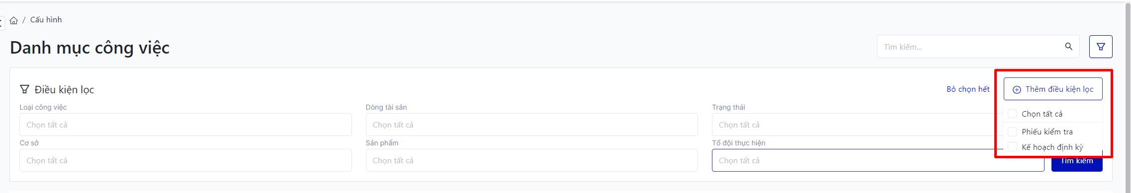 I. Các điều kiện lọc và tìm kiếm danh mục công việc![]()