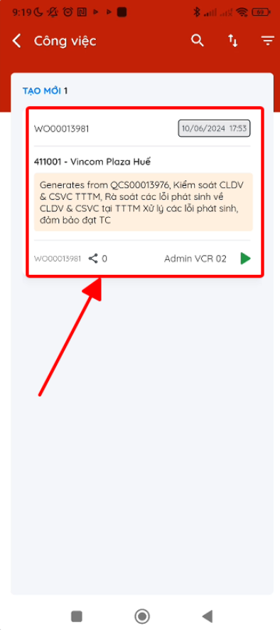 ![]() Bước 4: Nhấn vào công việc thực hiện