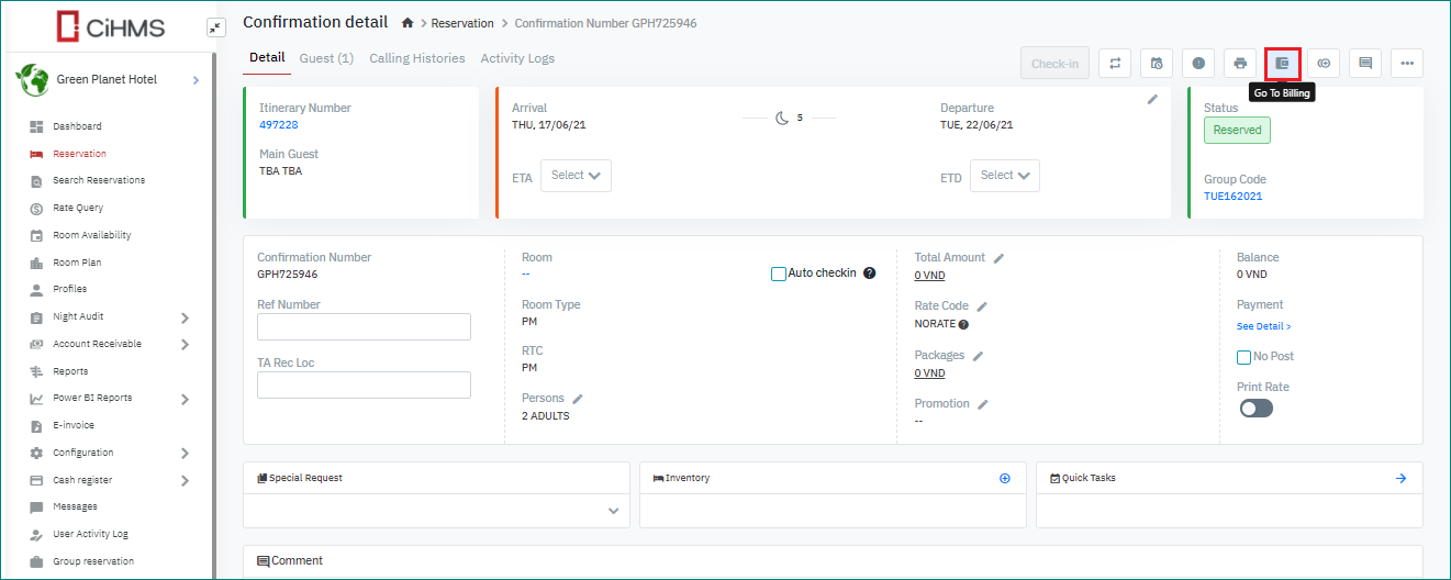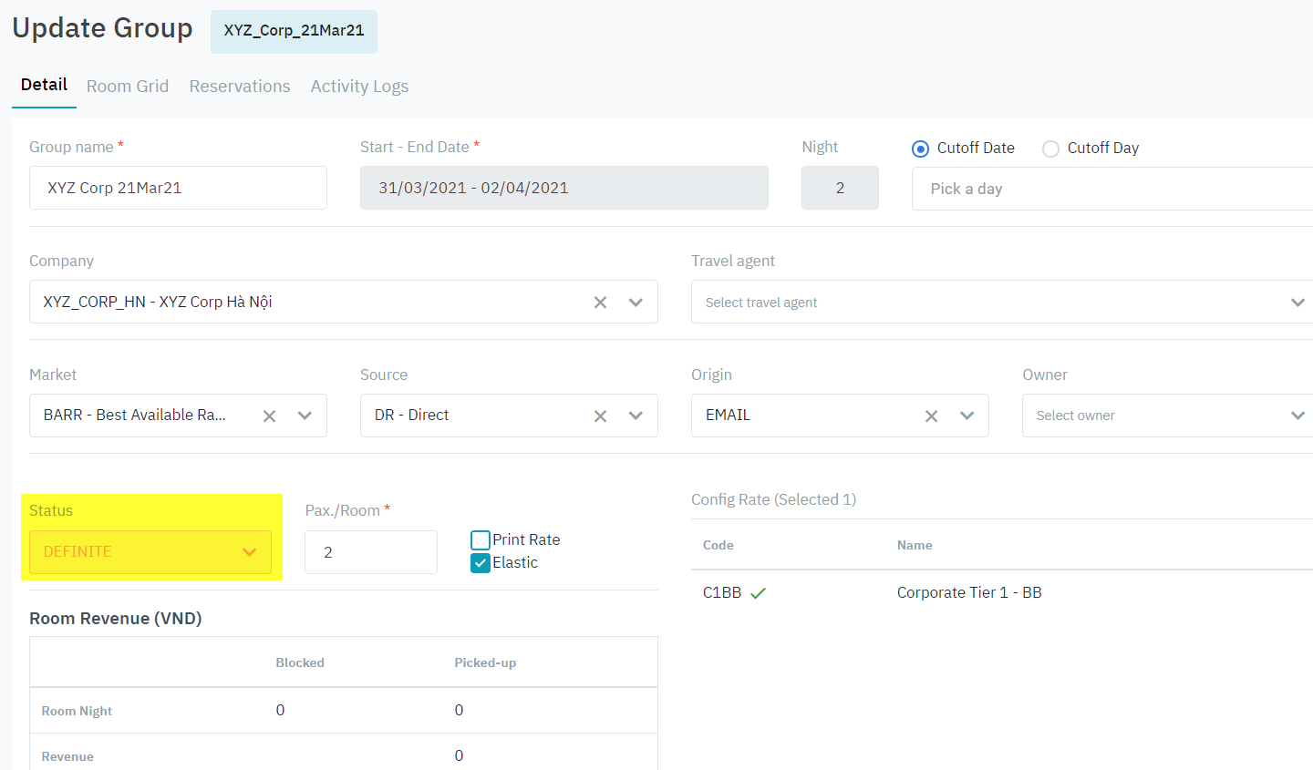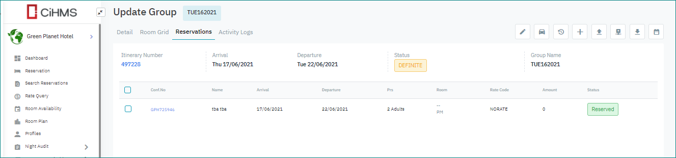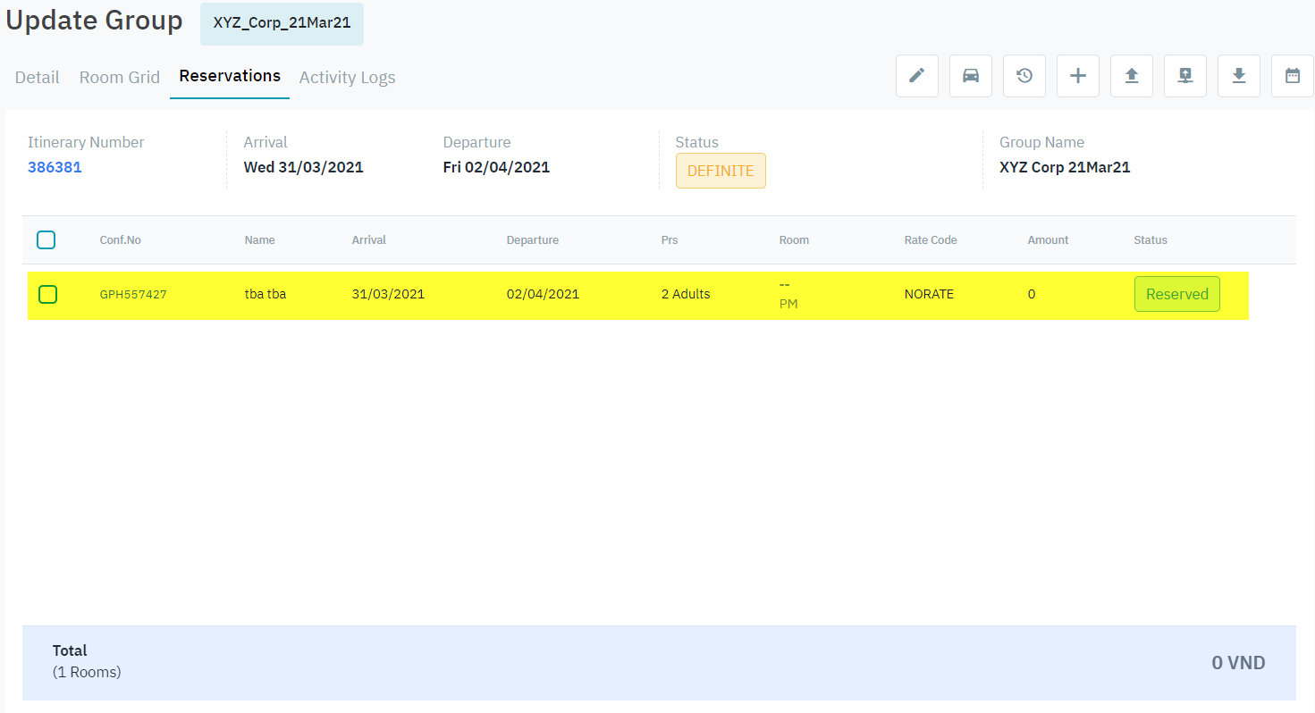 Cập nhật thông tin cho đoàn (Group Reservation) |