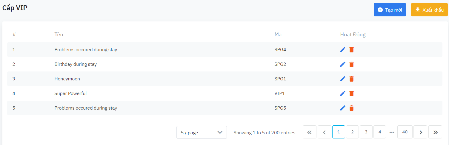 Phân loại Cấp độ V.I.P |