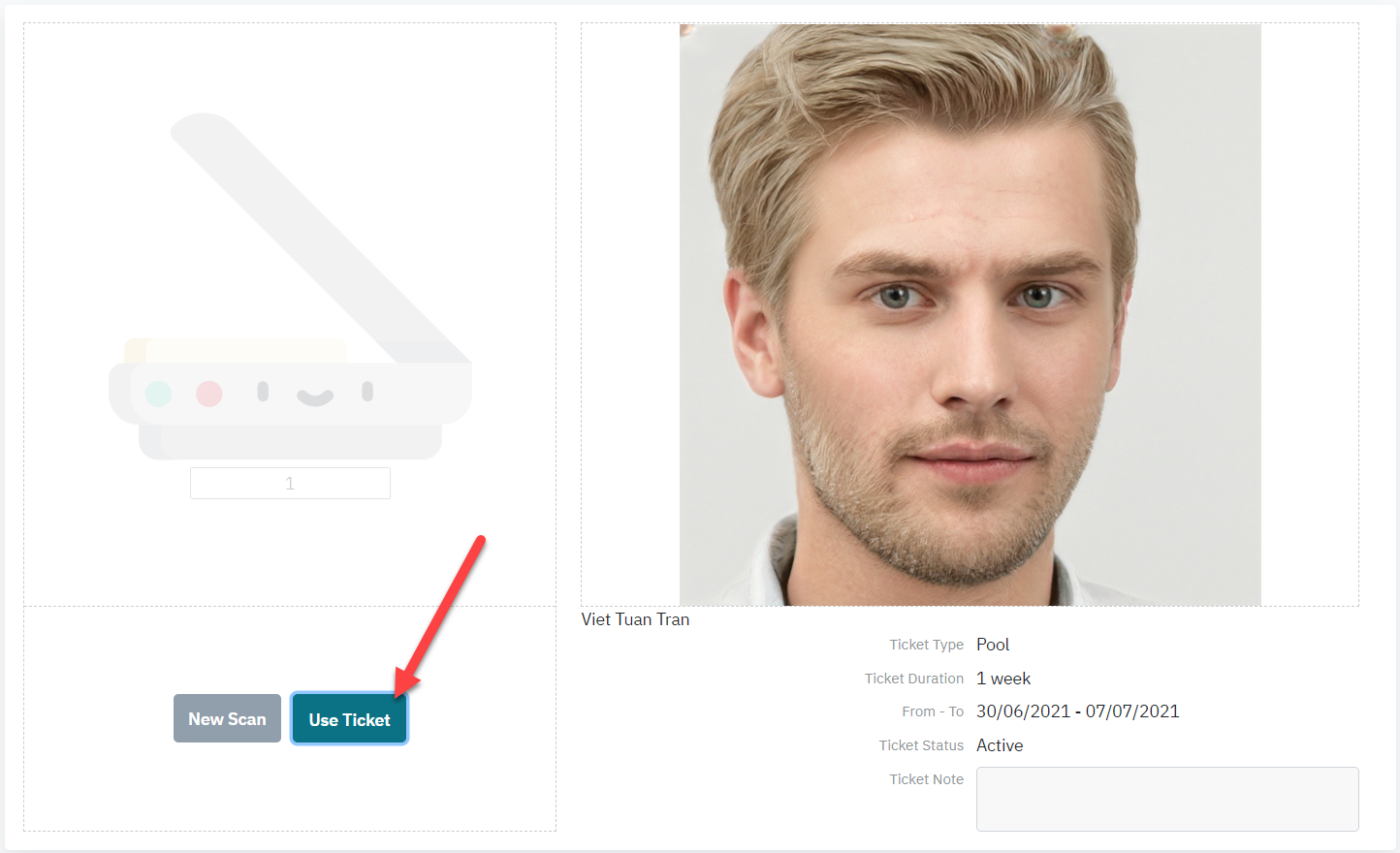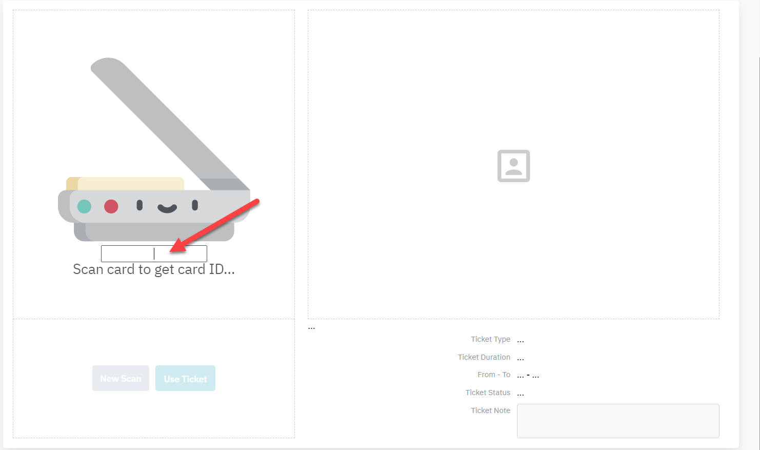 1) Scan Card & Check In/ Quét thẻ để check in khách:Bước 1: Click chuột vào ô quét thẻ để dấu nháy xuất hiện trong ô quét thẻ. ![]()