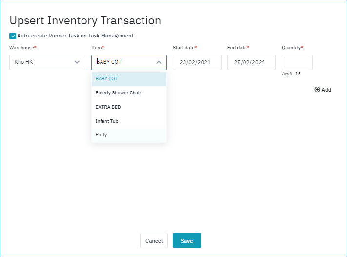 Khi tích vào ô thì hệ thống sẽ tự động tạo nhiệm vụ cho bộ phận Runner trong phần Task Management. Chi tiết cụ thể xem trong phần Task Managment
