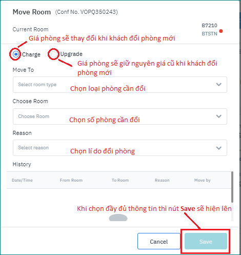 DNM (Do Not Move): Tích chọn nếu đặt phòng này không cho phép thực hiện chuyển phòng. Khi lựa chọn này được tích, nút chức năng Move Room sẽ không hiển thị với đặt phòng này