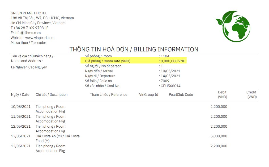 Thành tiền/Stay Total: Tổng tiền phòng của cả giai đoạn lưu trú