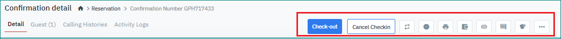 Hủy check-in/Cancel Checkin: Thực hiện hủy checkin của khách chính trên đặt phòng. Đặt phòng của khách sẽ chuyển từ Tab Inhouse về lại Tab Arrival. Nút chức năng chỉ hiển thị khi khách đang in-house trong khách sạn và khi số dư Balance khác 0.