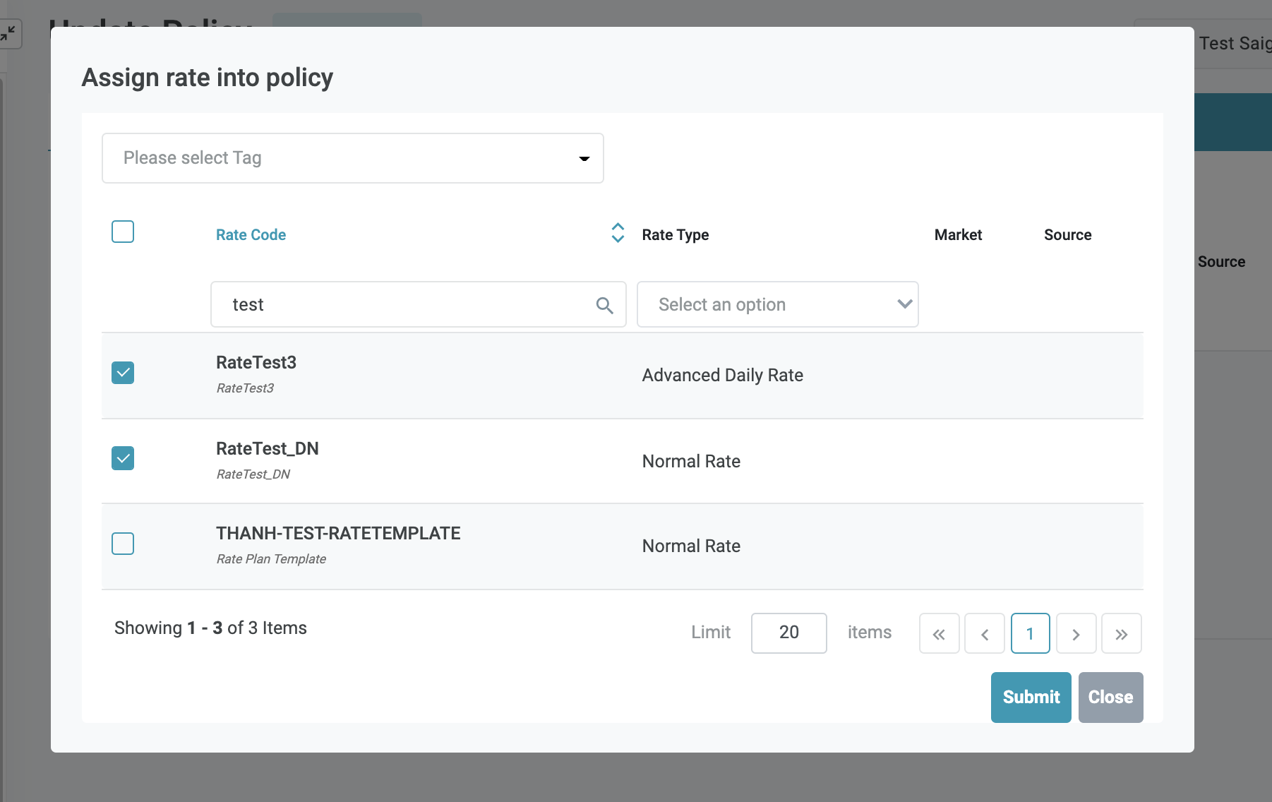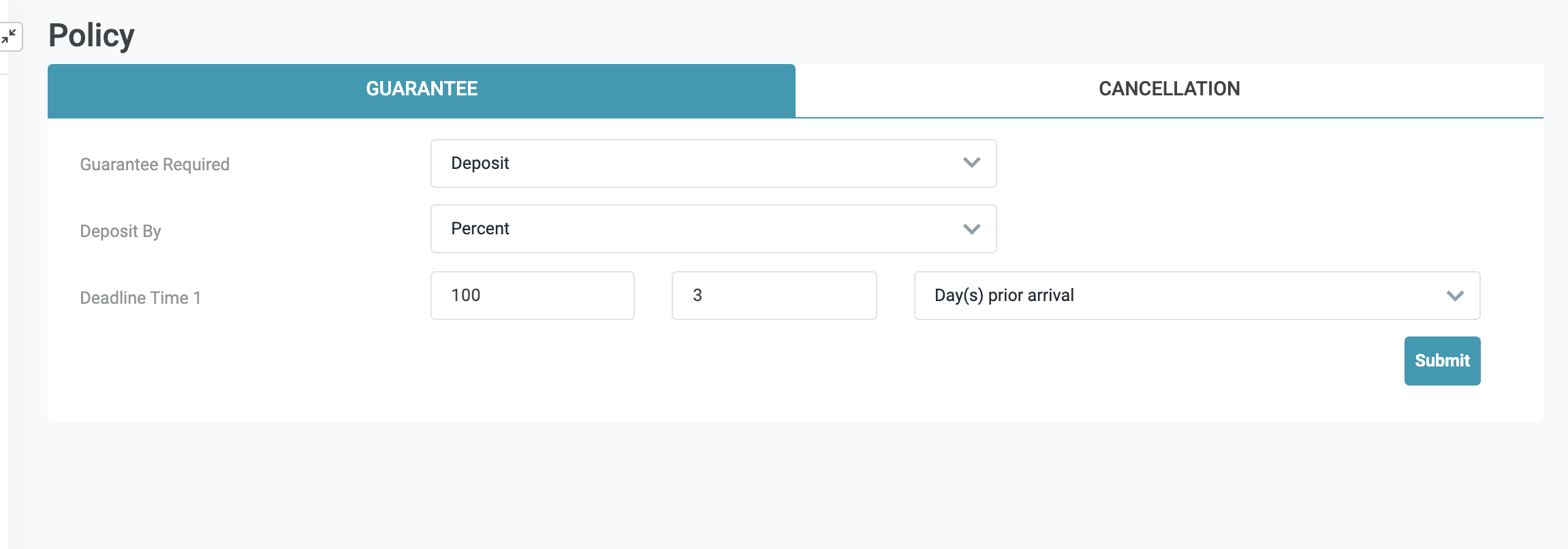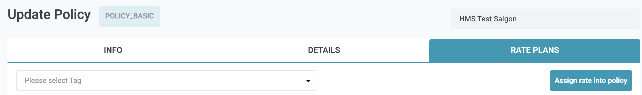 ![]() Lọc hiển thị chính sách theo loại chính sách bảo đảm ![]() Chính sách bảo đảm sẽ được gán theo mã giá ở cấp độ cơ sở, trong trường hợp áp dụng chính sách bảo đảm cho 1 đặt phòng nhưng mã giá của đặt phòng này không được cài chính sách đảm bảo, hệ thống sẽ ưu tiên sử dụng chính sách bảo đảm Mặc định được áp dụng cho toàn cấp độ tổ chức/công ty (organization). Màn hình cấu hình chính sách bảo đảm cấp độ organization (Log in – Rate Service Management → Setting → Policy) ![]() |