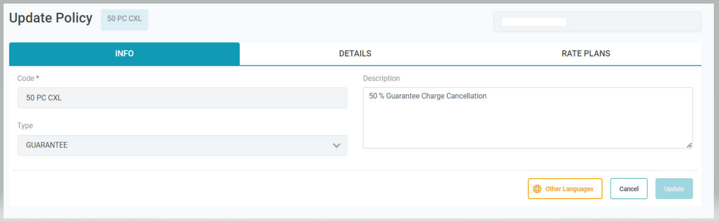 Chọn Create để tạo tạo chính sách đảm bảo hoặc nhấn Cancel nếu muốn hủy việc tạo chính sách đảm bảo [Delete Policy] – Xóa một chính sáchChọn biểu tượng xóa của chính sách tương ứng cần xóa. Chọn Confirm để xác nhận và hoàn thành xóa chính sách hoặc chọn Cancel nếu muốn hủy việc xóa. ![]() [Tab Info] - Chỉnh sửa cho chính sáchChọn vào biểu tượng chỉnh sửa chính sách ![]() ![]() Ở màn hình chỉnh sửa thông tin chính sách, người dùng chỉ được chỉnh sửa mục Description của chính sách. Chọn vào nút Update để lưu lại thông tin chỉnh sửa hoặc chọn Cancel để hủy việc chỉnh sửa. Lựa chọn Other Languages để lưu lại thông tin về chính sách bằng ngôn ngữ khác. [Tab Details Config] - Tạo Chi tiết của chính sách đảm bảoChọn vào Details Config Tab để mở danh sách chi tiết của một chính sách ![]() Để Tạo một chi tiết mới cho chính sách, chọn vào nút Create. ![]() Để Xóa một chi tiết chính sách, chọn vào biểu tượng xóa, nhấn vào nút Confirm tại cửa sổ xác nhận. Tại cửa sổ tạo chi tiết chính sách, nhập vào các thông tin được yêu cầu. Nhấn Save để lưu lại thông tin, hoàn thành tạo chi tiết Có 2 chế độ đảm bảo tại màn hình cài đặt chi tiết: