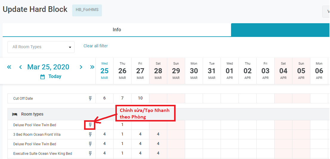 Chỉnh sửa chi tiết Hard Block Allotment - Quỹ phòng cố định của một kênh bán phòng |