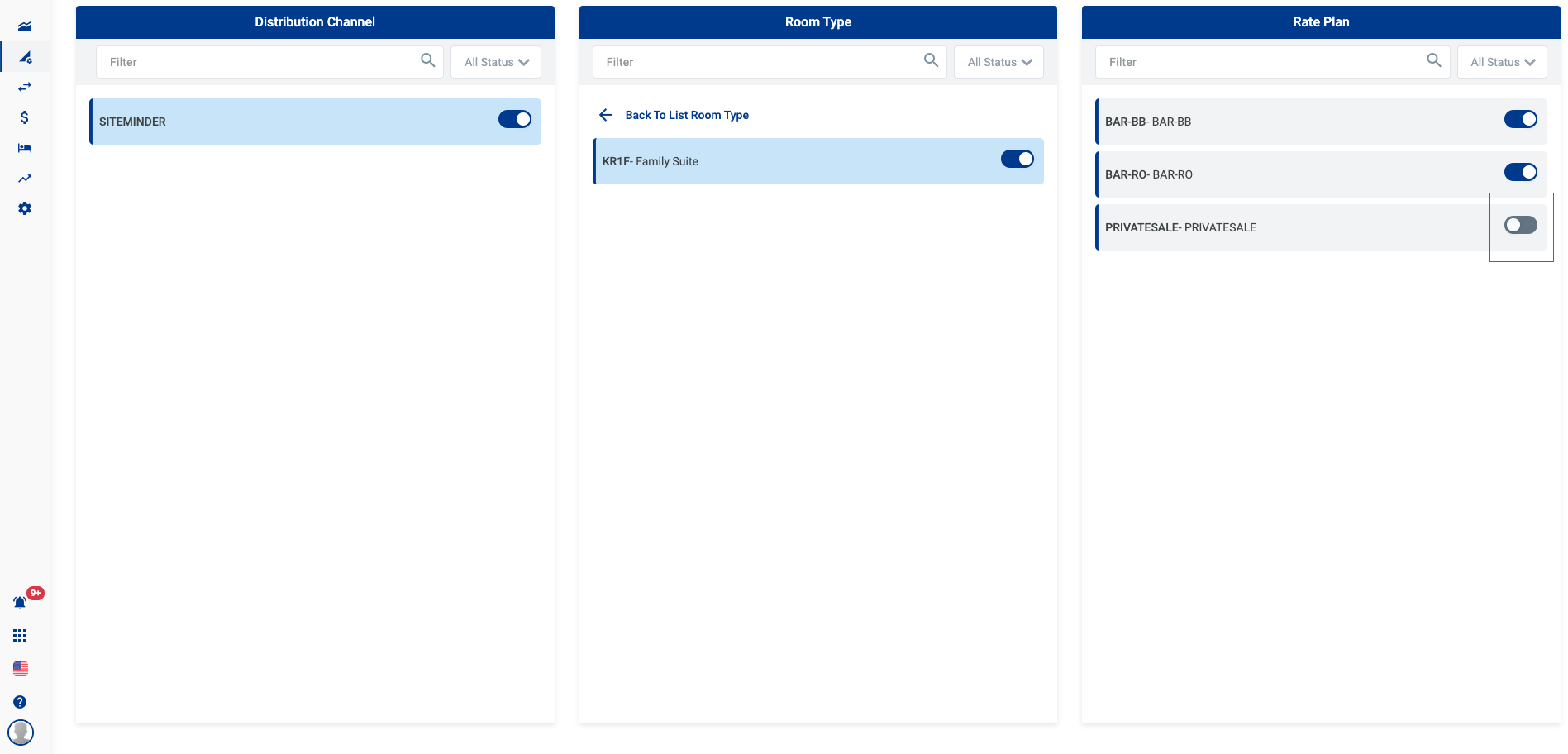 Những thay đổi trong màn hình này được áp dụng cho các page có sự hiển thị DC, Room type, Rate plan trong hệ thống Channel Manager như Room Management page, Rate Management page…