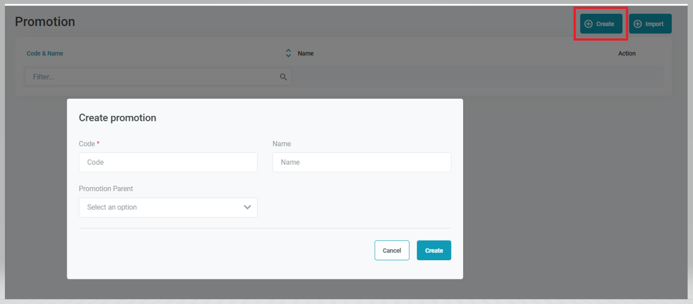 [Create Promotion] – Tạo khuyến mãi mớiNhấn vào Create để thực hiện tạo khuyến mãi mới ![]() Tại cửa sổ tạo khuyến mãi mới , nhập vào các thông tin: Chọn Create để hoàn thành tạo khuyến mãi mới hoặc Cancel nếu muốn hủy việc tạo khuyến mãi. |