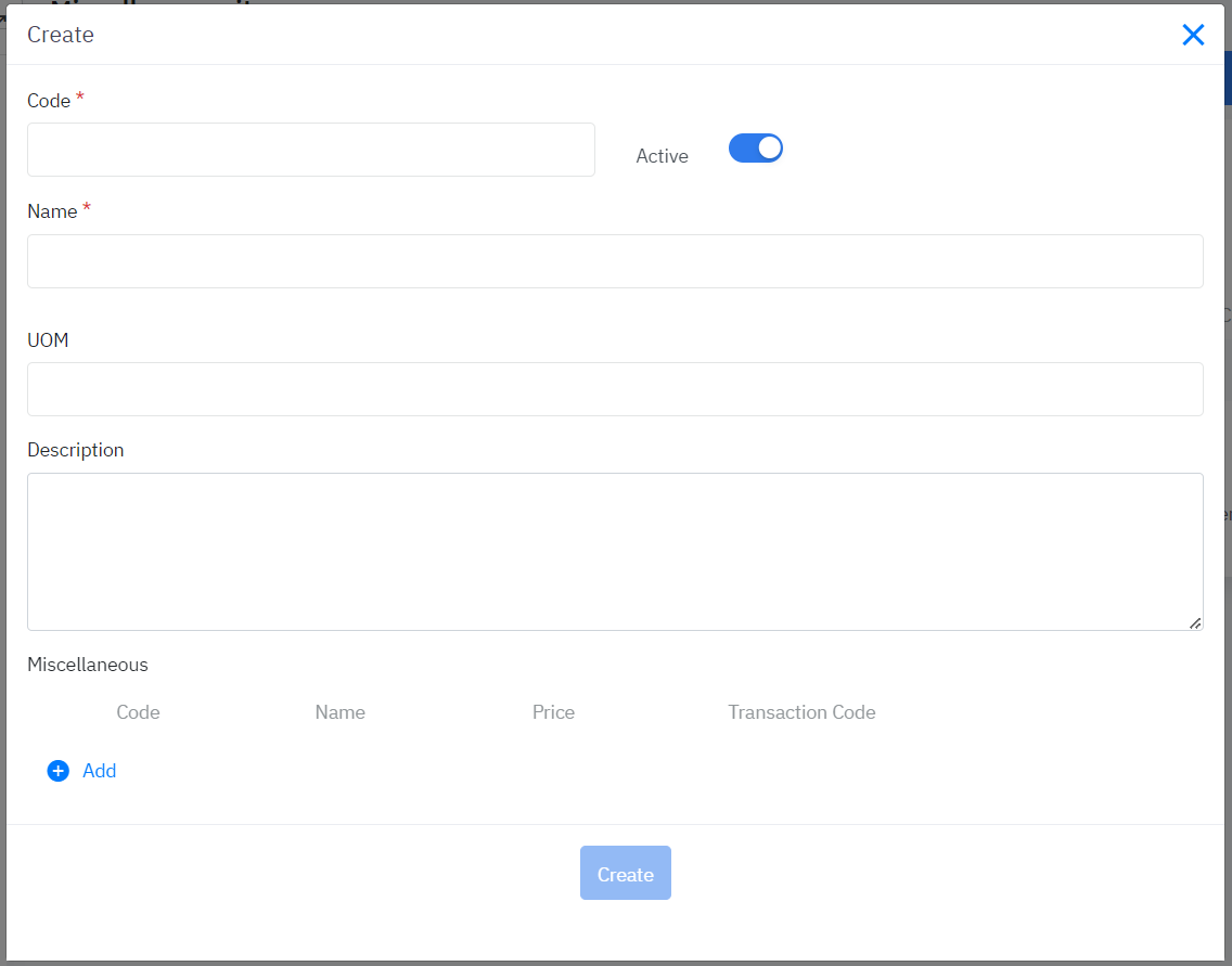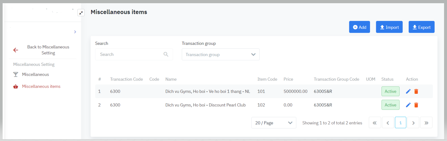 Danh mục dịch vụ phát sinh (Miscellaneous items)