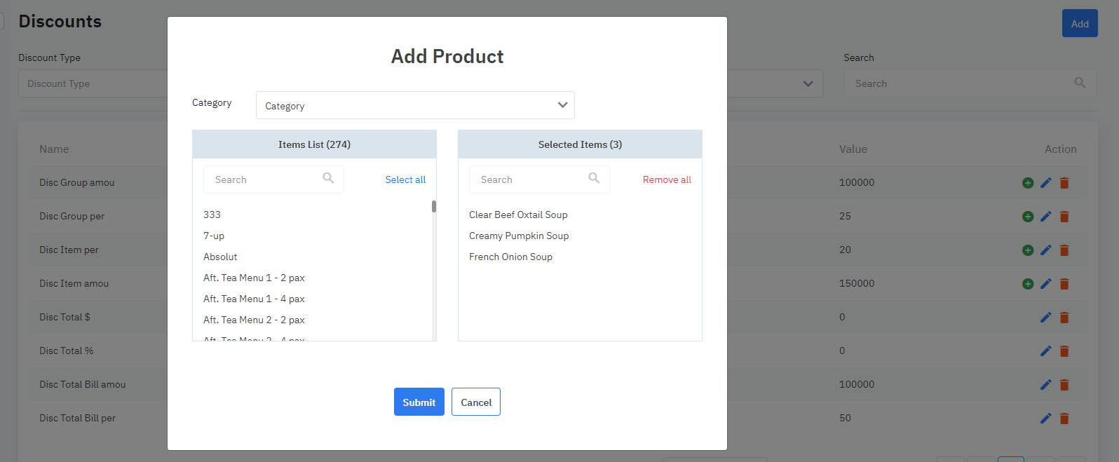 Thêm mới một giảm giá bất kỳ: Click Add và thêm thông tin giảm giá ![]() |