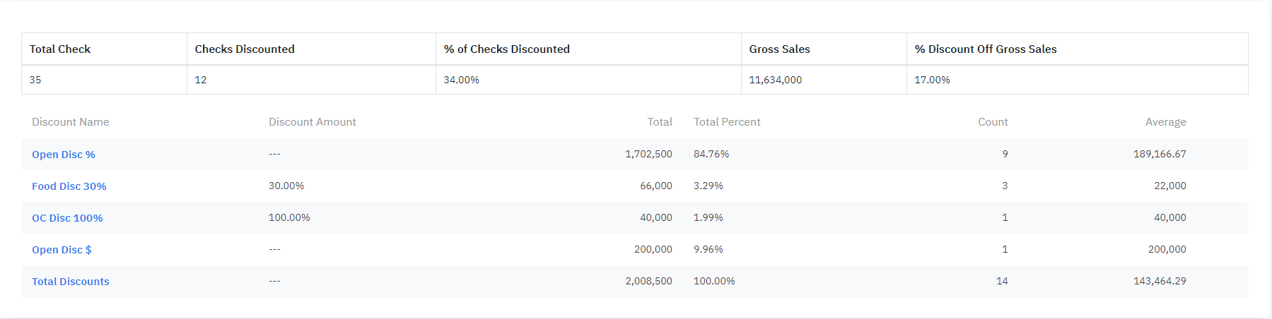 Discounts Summary
