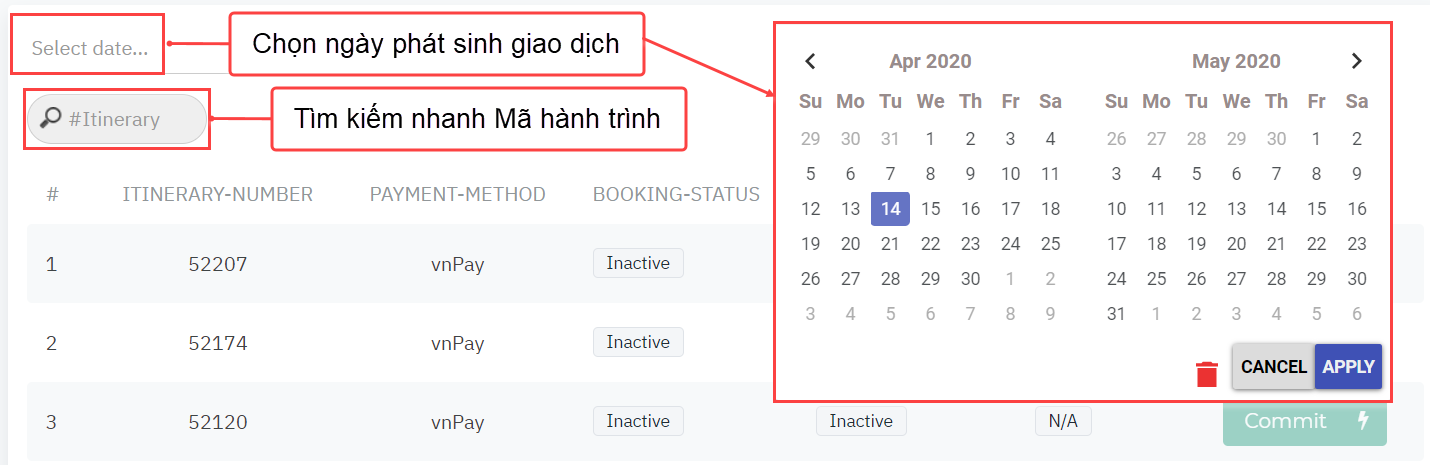 Quản lý các booking được thanh toán qua Mobile App bằng các hình thức thanh toán nhanh |