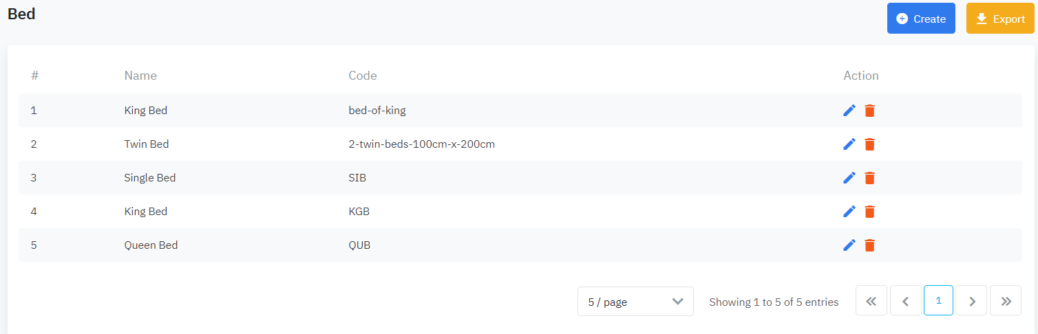 Tạo tên các loại Giường/Bed có ở khách sạn |