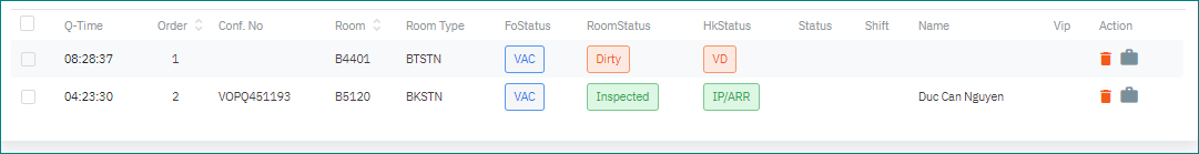 Thực hiện chức năng thêm phòng vào hàng đợi để nhân viên bộ phận buồng phòng kiểm tra và dọn phòng trước khi khách đến |