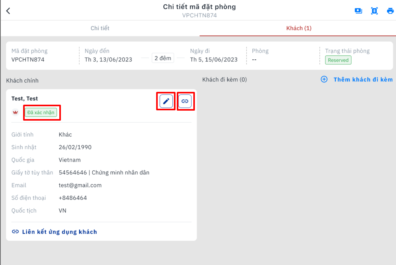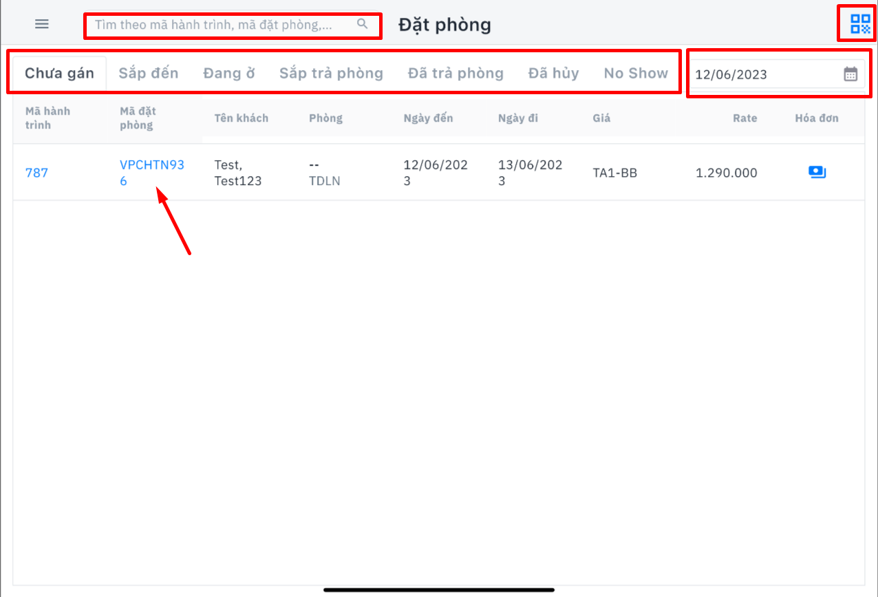 ![]() III. Màn hình chi tiết mã đặt phòng |