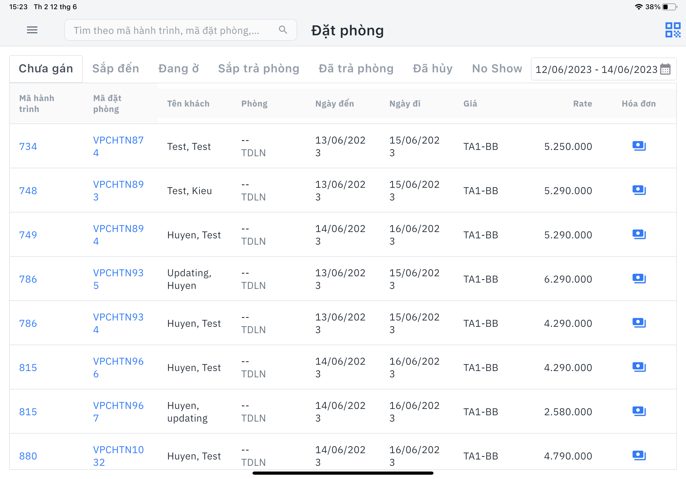 I. Màn hình đặt phòngSau khi đăng nhập, màn hình đặt phòng hiển thị các trường thông tin: ![]() Người dùng có thể tìm kiếm thông tin booking bằng nhiều cách: