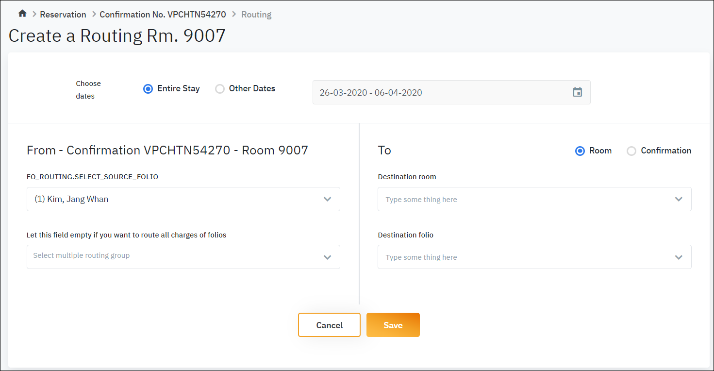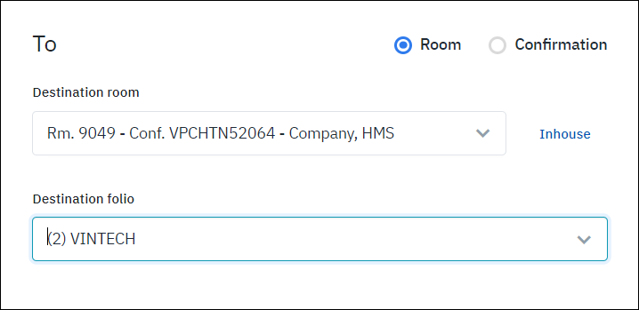 Thông tin nhận routing:![]() Người dùng có thể chọn tìm kiếm theo số phòng hoặc theo số Conf No. của đặt phòng