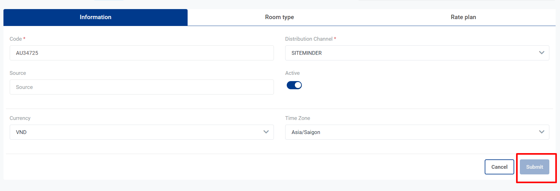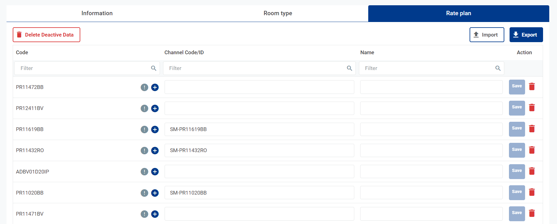 ![]() [Tab Rate Plan] - Danh sách các mã giá phòng của một Mapping
