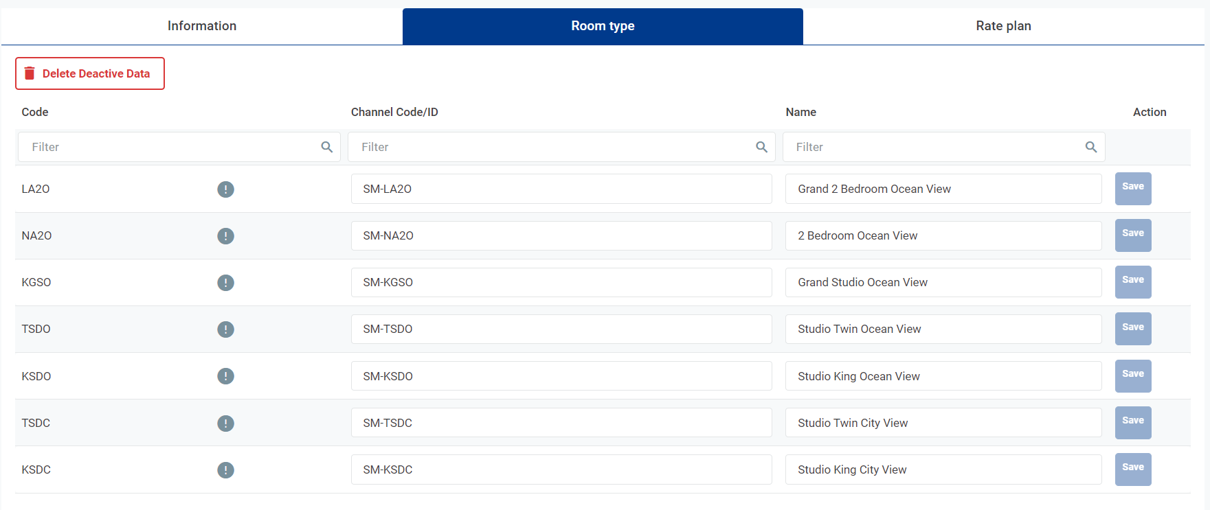 ![]() [Tab Room Type] - Danh sách các loại phòng của một Mapping