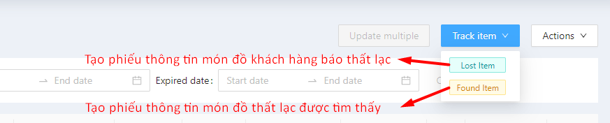 1. Theo dõi/Track Item: Tạo một số phiếu ghi nhận![]() Lost Item/Món đồ báo thất lạc ![]()