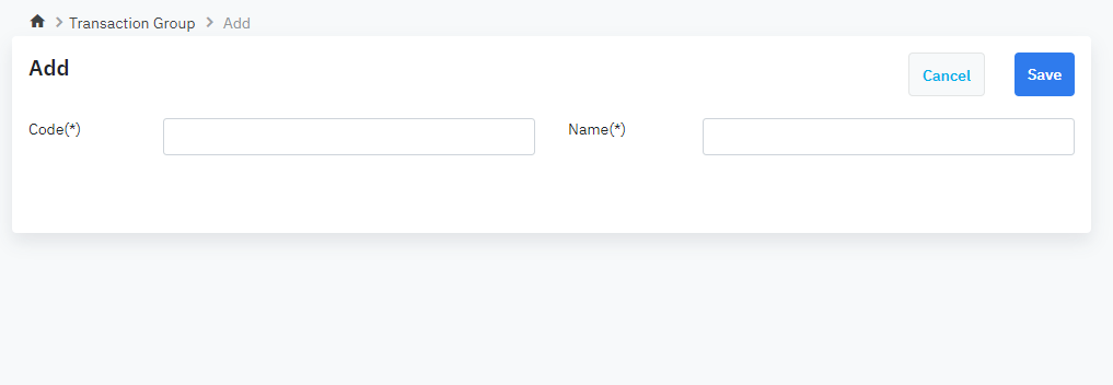 Log in – Appications - PMS Configuration – Master Data – Organization – Transaction Group Code |