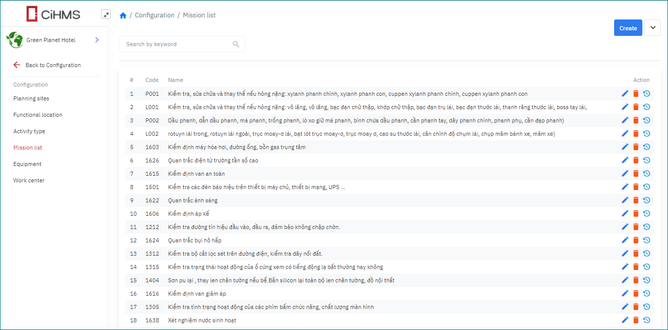 Mission List (Danh sách đầu việc) |